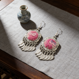Exquisite Brocade Tassel Dangle Earrings Ethnic Style for Women