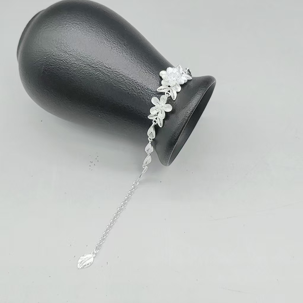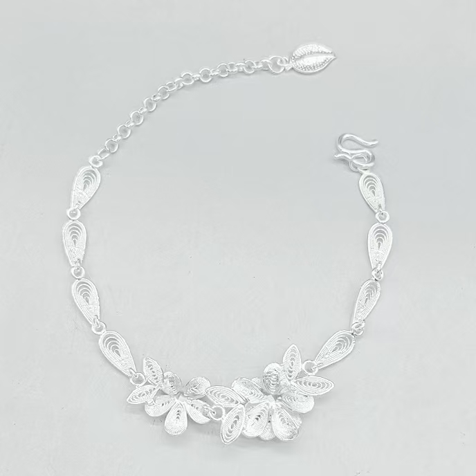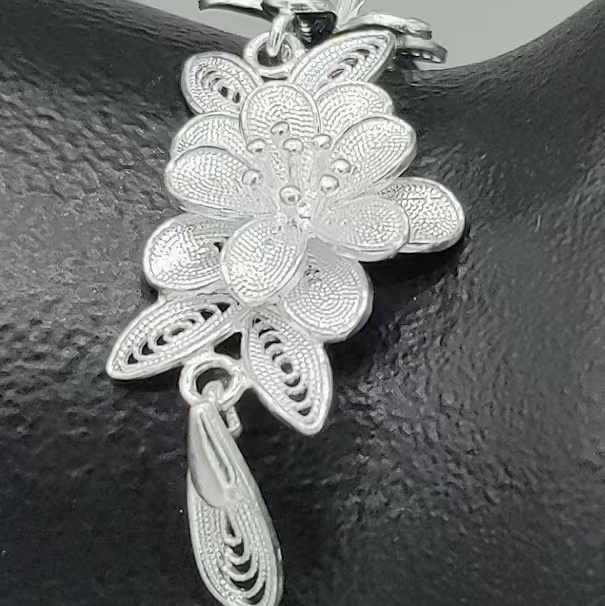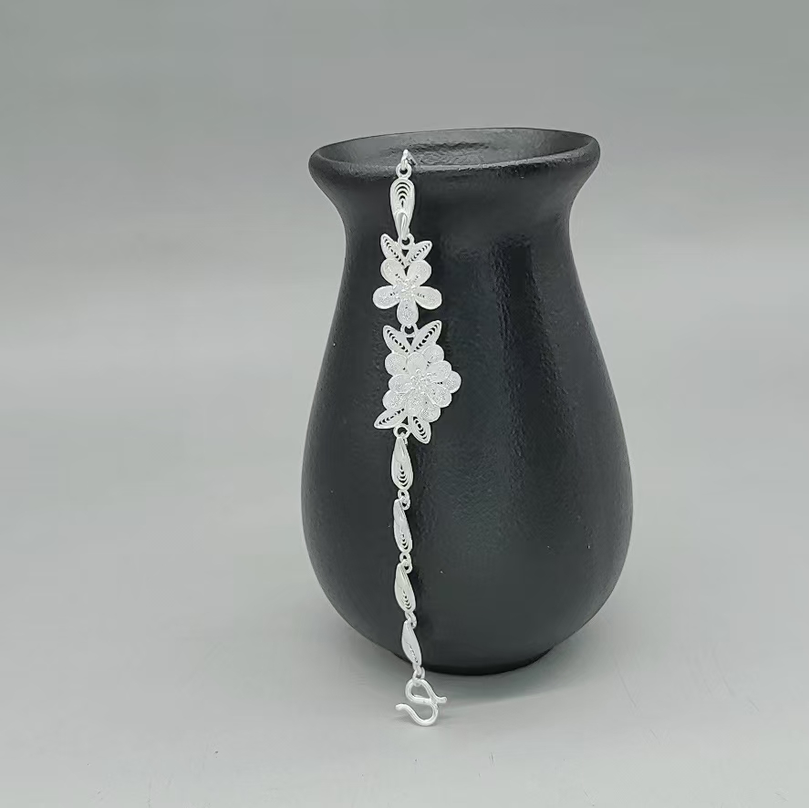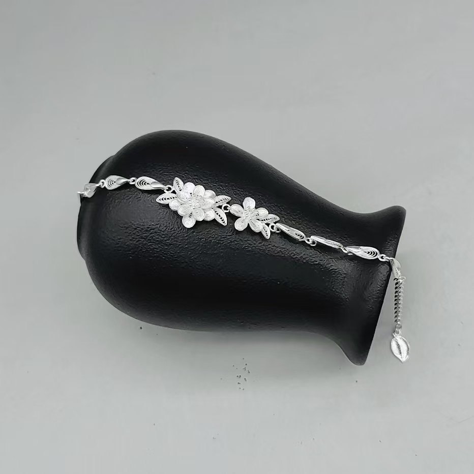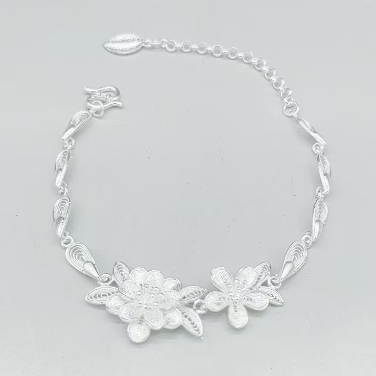 “Inspired by classical Chinese poetry, this bracelet depicts two blooming flowers reflecting on the moonlit water—an emblem of harmony and timeless elegance”