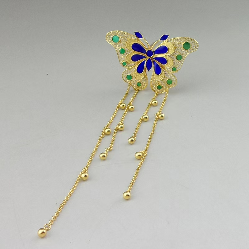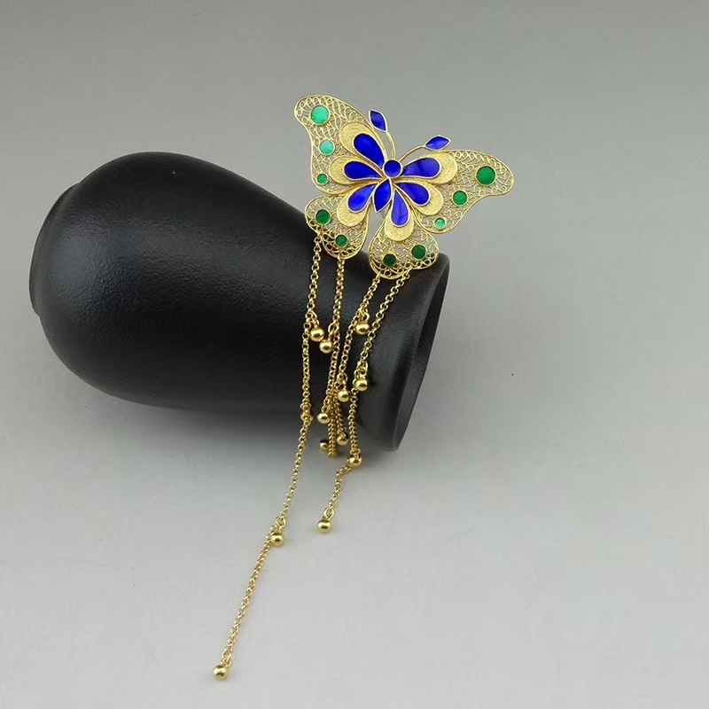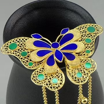 This exquisite gold-plated cloisonné hairpin is more than an accessory—it’s a piece of living history, rooted in one of China’s most revered artistic traditions: Cloisonné (Jingtailan).