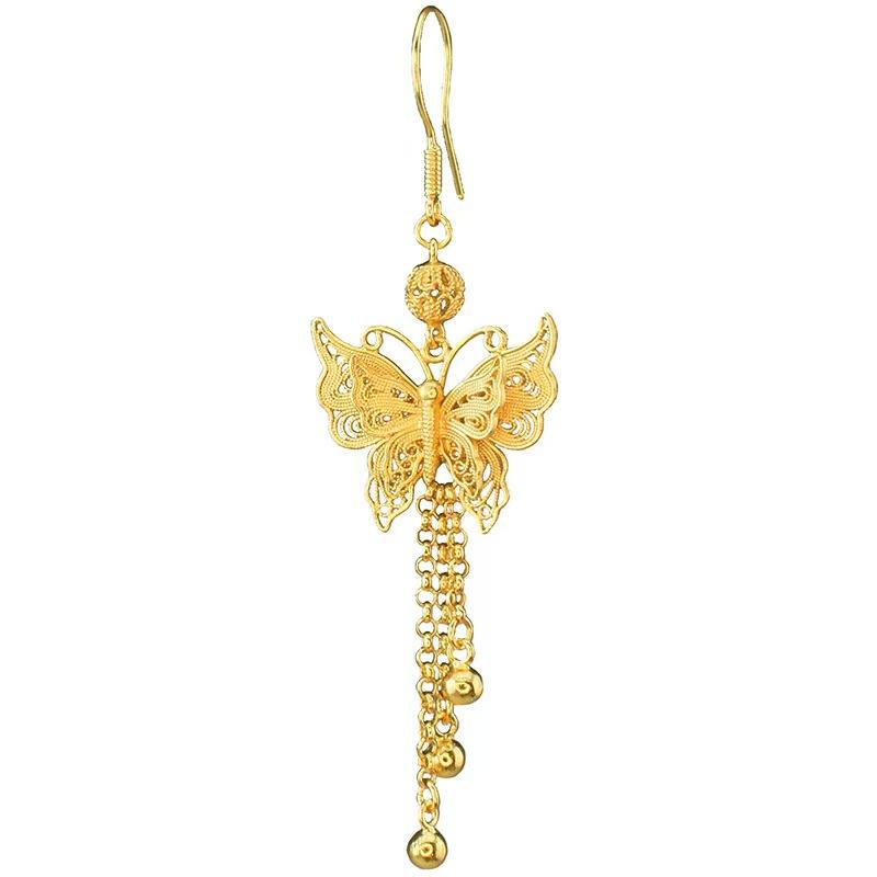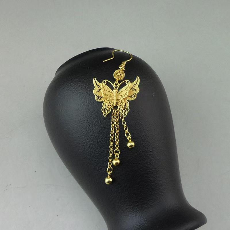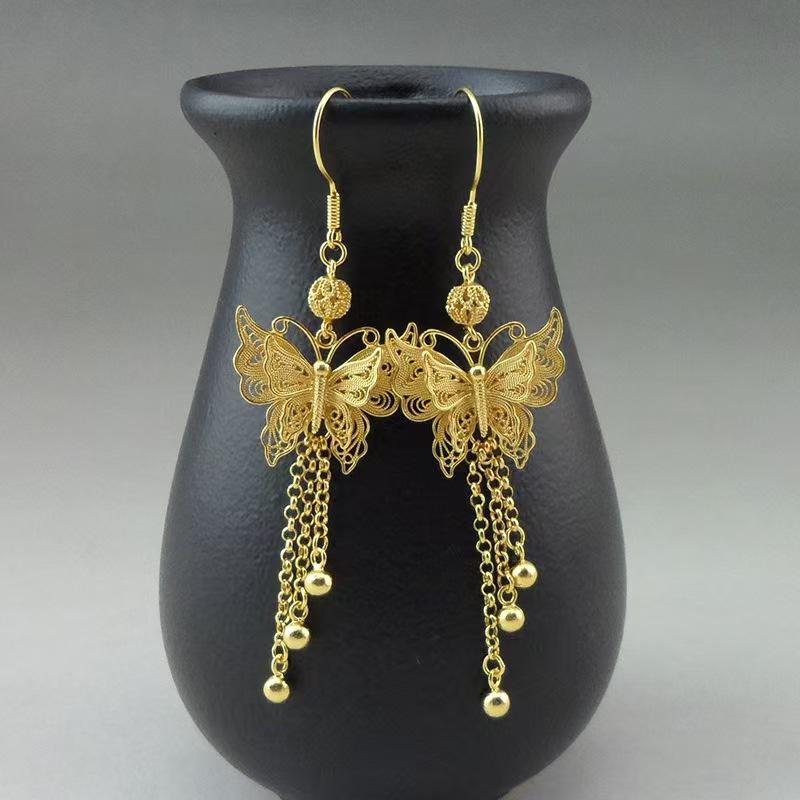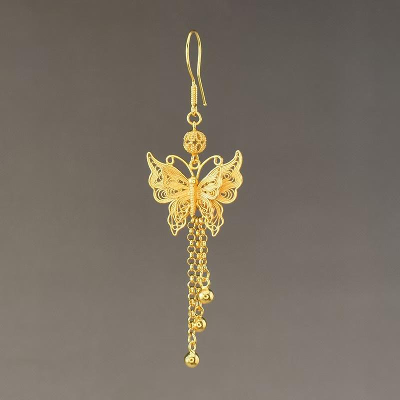 Handmade Premium Gold-Plated Earrings | Retro Butterfly Drop Tassel Dangles
