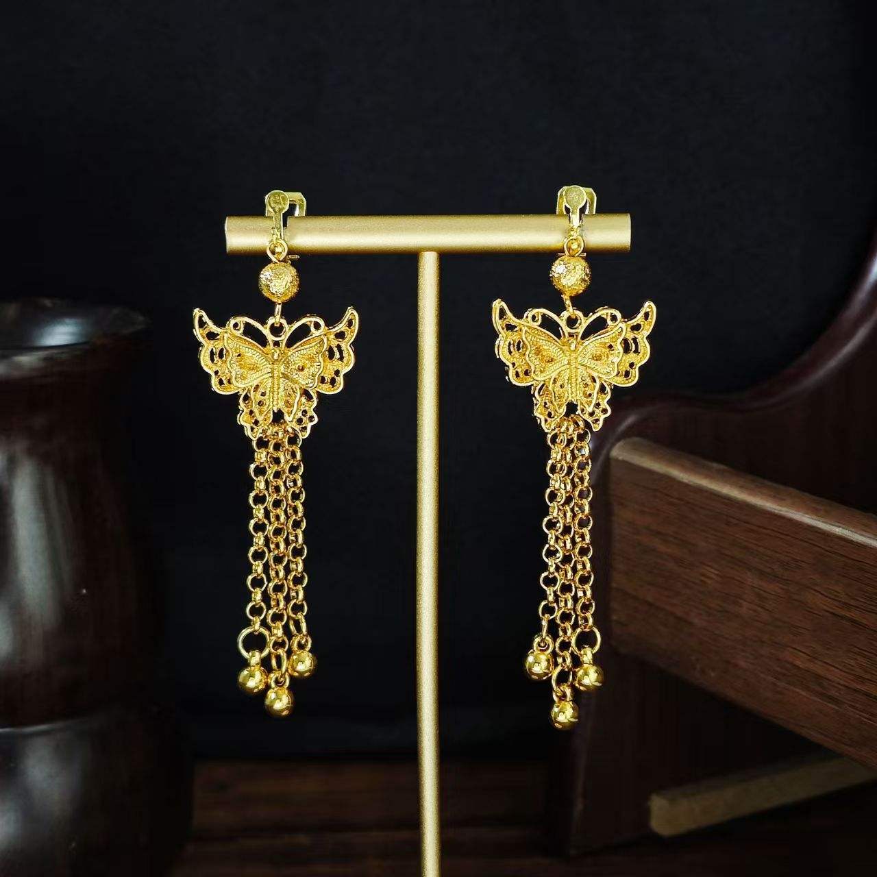Adorn yourself with these handmade premium gold-plated earrings! Featuring a whimsical retro butterfly drop design and delicate swaying tassels, they exude vintage elegance with every move. Lightweight, durable, and perfect for daily styling, festivals, or romantic dates— a must-have for lovers of feminine, retro-inspired accessories.